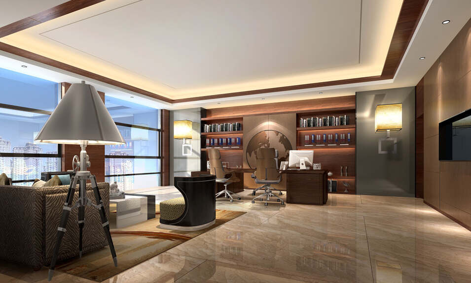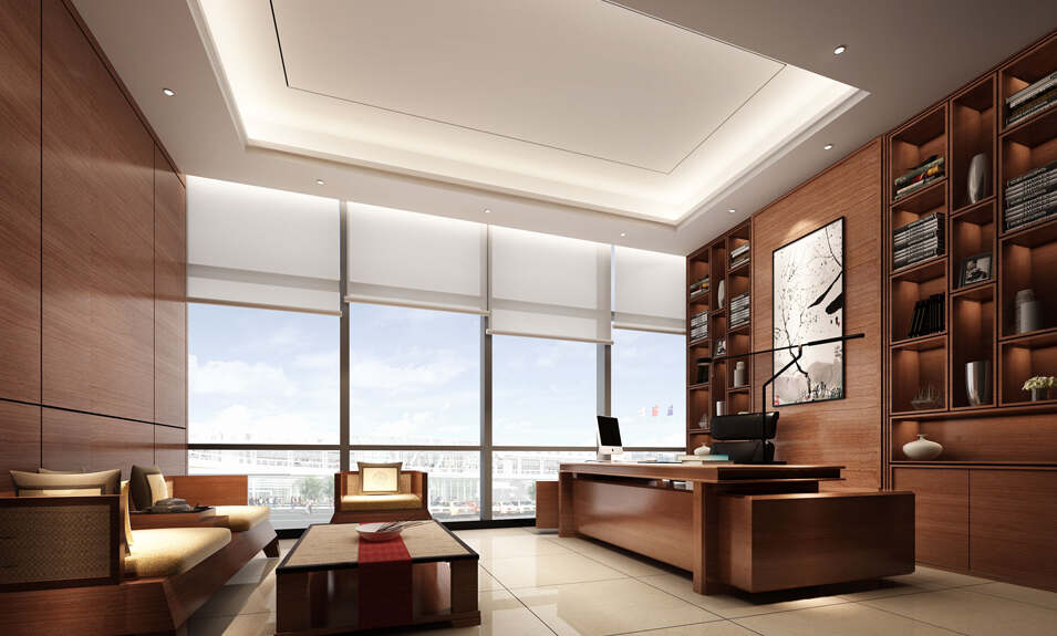 設(shè)計(jì)介紹:現(xiàn)代簡(jiǎn)約凝重風(fēng)如何展現(xiàn)?設(shè)計(jì)師們運(yùn)用棕色的色調(diào)表現(xiàn)出凝重感,頂部圓形中國風(fēng)網(wǎng)狀帶有悠久的中國藝術(shù),天圓地方設(shè)計(jì),使人一進(jìn)入到這個(gè)辦公室給人與專業(yè)、理性的感覺,這點(diǎn)特別符合公司的企業(yè)文化。
